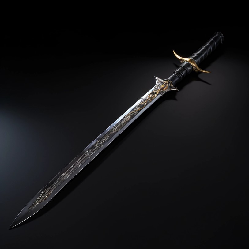 - Description: An ancient sword of unknown origin, forged from an exotic alloy that emits a subtle, melodic hum when wielded. The blade is perfectly balanced and seems to guide the wielder’s hand.
