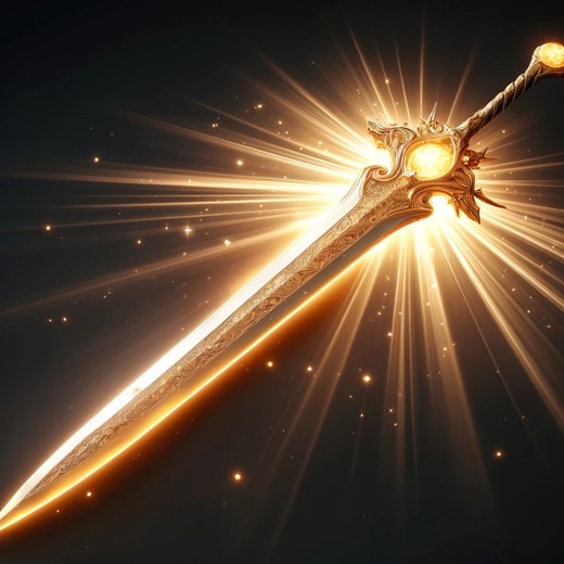 - Description: A golden sword that glows with radiant energy, used to strike down darkness and inspire allies.