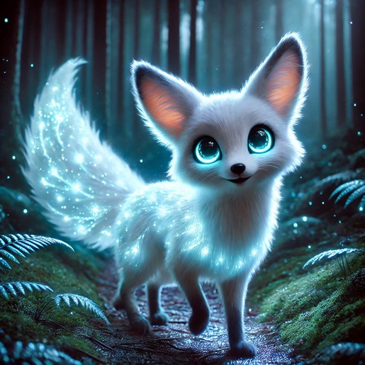 One fateful night, as Seraphina wandered beneath the canopy of ancient trees, she lost her way. The darkness grew thick and impenetrable, and the air hummed with the songs of unseen creatures. In her hour of despair, a soft glow appeared, illuminating the path before her. It was the Luminescent Foxfire, its fur aglow with a gentle, bluish light that banished the darkness and fear from her heart.