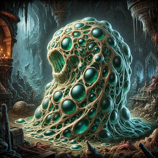 Environment Where Found: Morphic Oozes thrive in environments with numerous objects, items, or other creatures that they can imitate. They are commonly encountered in treasure chambers, ancient ruins, or areas filled with scattered artifacts. The dungeon’s labyrinthine hallways and hidden chambers serve as ideal hiding spots for morphic oozes to lie in wait for potential prey.