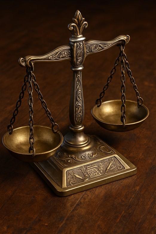 - Description: The beam of the scale bends microscopically toward dishonesty or imbalance in the phrasing, allowing a seasoned observer to interpret where danger lies.