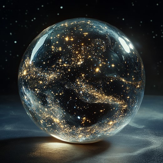 Thus began a period of making, unlike any she had undertaken before. The materials she sought were not common earth or metal. Legends, likely embellished through retelling, say she gathered a fragment of solidified midnight, chipped from the sky’s deepest hour during a potent eclipse (or perhaps it signifies a rare, dark type of crystal?). She is said to have captured the faint light of the most distant stars, coaxing shimmering motes (sky-fire dust?) into her hand using complex weavings of light. Some versions of the tale, possibly later additions, insist she mingled these celestial elements with one of her own tears, shed in sorrow, which formed a nebula-like swirl within the core. With focused will, more than physical tools, she shaped these elements into a sphere, smooth and cool, the size to fit within a palm. It was clear as purest ice, yet held within it a miniature, perfect night sky, the captured star-motes gleaming softly within the contained darkness. Upon its surface, faint, intricate lines emerged, tracing the paths of the constellations the Sky-Watcher had loved most, seeming to shift subtly as the orb was turned.