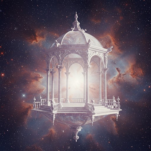 Appearance: The Celestial Pavilion is an ethereal and otherworldly structure. Its main body is constructed from luminescent crystal, giving it an iridescent glow that changes with the phases of the moon. The pavilion is adorned with intricate silver filigree that depicts celestial constellations and mythical creatures dancing across its surface. Its roof arches upwards like the wings of an angel, and a grand spiral staircase leads up to the entrance.