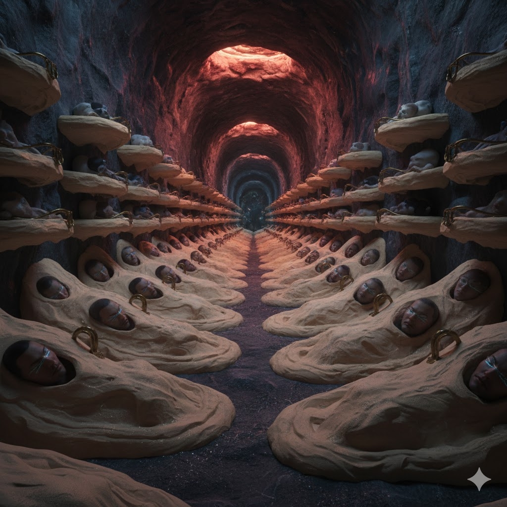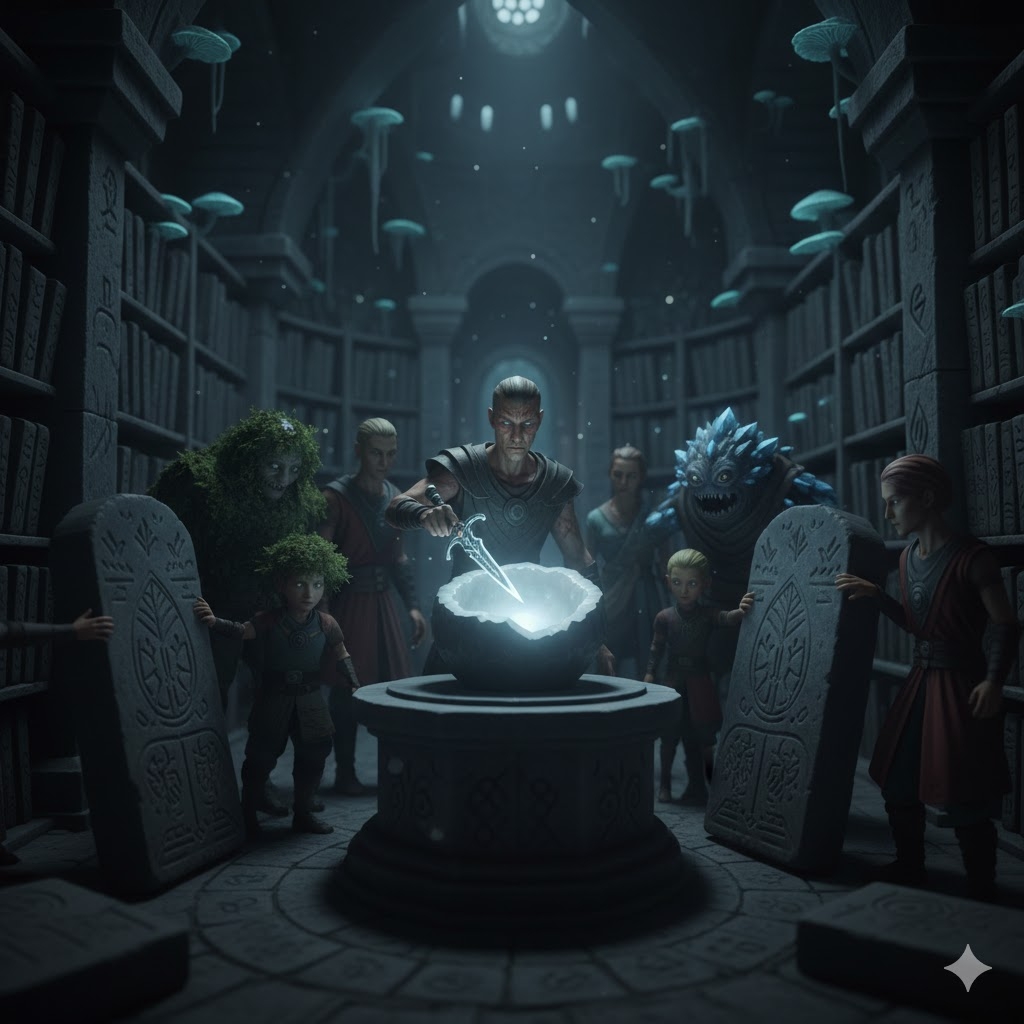 In those damp-days, the Labyrinth was a womb of the Muted-Light. The people did learn to float in the Salt-Vats and to eat the Paste-of-No-Chewing. They did understand that a soul in a new-shape is like a tooth in a sore-gum—it must be left to sit in the dark until the ache does pass. The Healer did place the Warning of the Lead-Door at the back of the deep. It was whispered in the salt-etched runes: “Do not let the Loud-Energy of the Deep-Places touch the Shivering-One, for the pain-interval of the Four-Sided-Dice shall tear the soul-thread from the avatar-loom.”