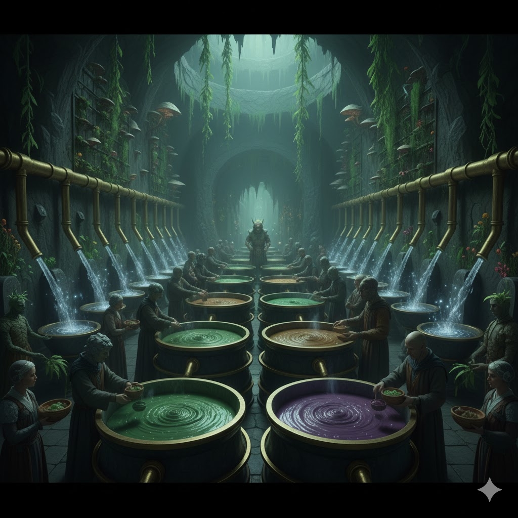 The Alchemical Steameries are industrial-sized chambers where the labyrinth’s steam power is utilized for systemic healing.