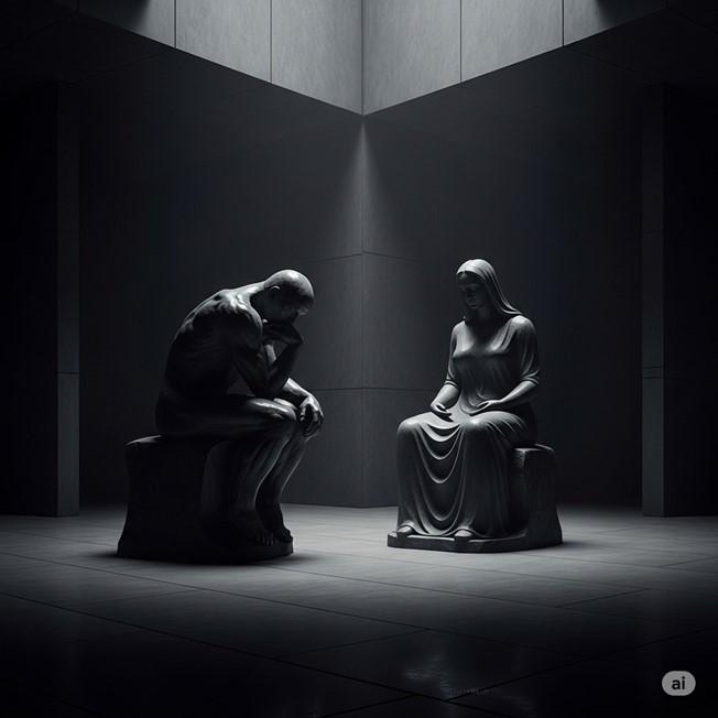 These two primordial experiences were recognized as the twin aspects of their silent godhead: Vidu, the Thinker, who embodies the clarifying power of deep contemplation, and Seda, the Sitter, who embodies the grounding strength of pure presence. The Boian people believe that all progress, from crafting a tool to building a city, can only be achieved by honoring this duality. First, one must sit in stillness with a problem (the Way of Seda), allowing the chaos to settle. Only then can one engage in focused thought to find the solution (the Way of Vidu). To act without thought is chaos; to think without being grounded is madness.