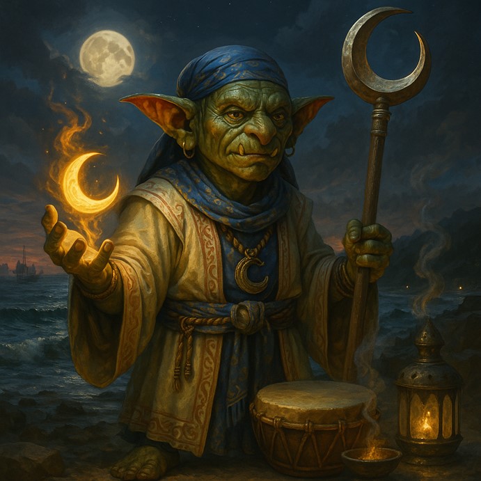 Followers hold that the deity commands the eternal cycle of tides, moon phases, and safe passage between the realms of the living and the beyond. They believe every voyage—whether across open seas, coastal waters, or rivers—is a miniature reflection of life’s journey, with each return to port a blessing and each departure a test. The moon’s changing face is said to be the deity’s shifting mood, signaling fortune, warning, or grief. Worshippers maintain that storms are trials sent to strengthen resolve, and that the drowned are personally guided into the deep halls of the deity’s domain.