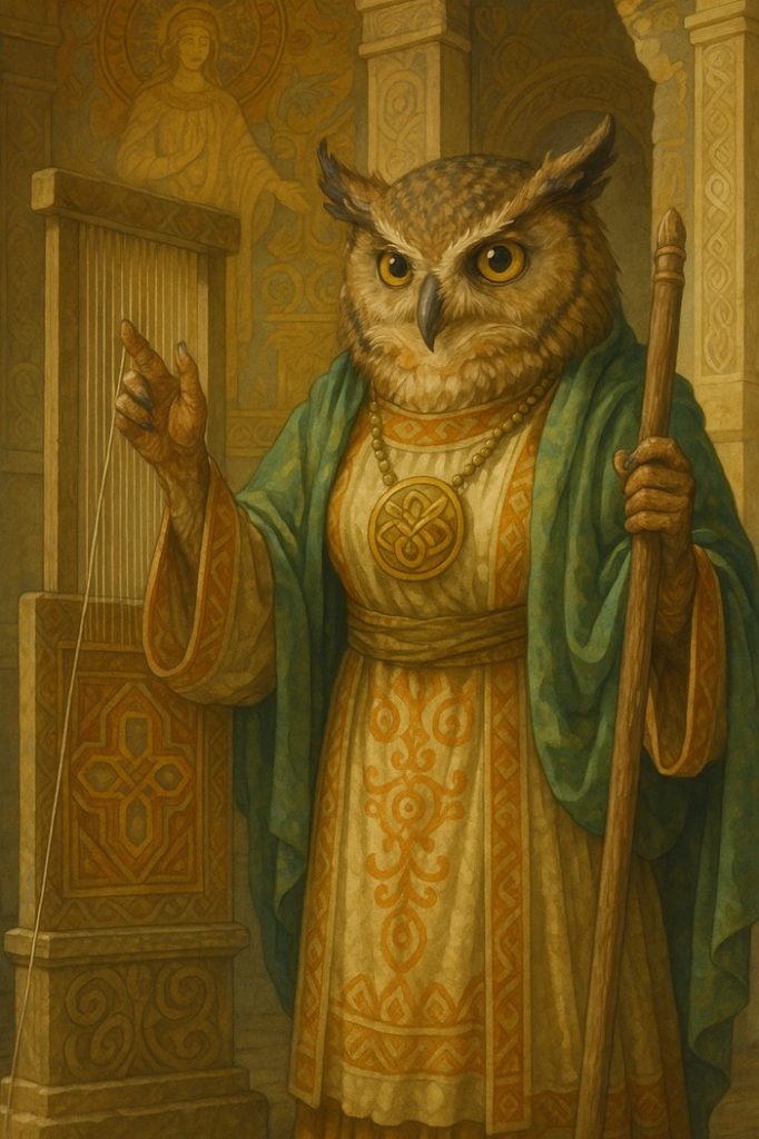 - Divinations in her faith are performed by tracing the “warp” of a tapestry until the path reveals a hidden image or omen.