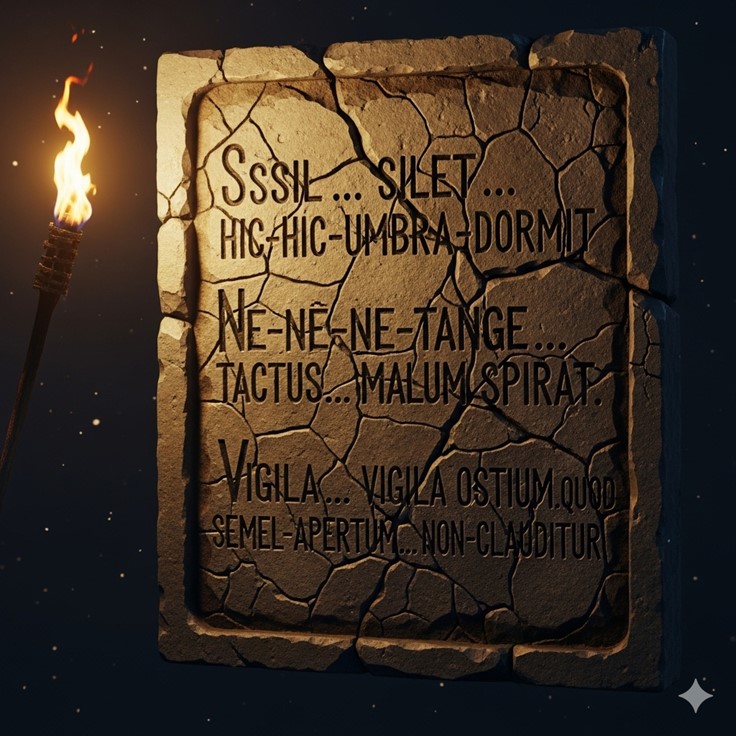 “Sssil… silet…” she breathed, her voice shaking like a reed in a storm that was not there. “O-oculus… in-in-tenebris…” The words were not smooth. They were jagged, broken things. They were uneven, like a frightened heartbeat. They were not a description of what she saw, but a description of the terror it carved into her soul. Her friends did not understand the words, but they understood the feeling. They understood the shaking tone, the uneven rhythm. They felt her fear as if it were their own.
