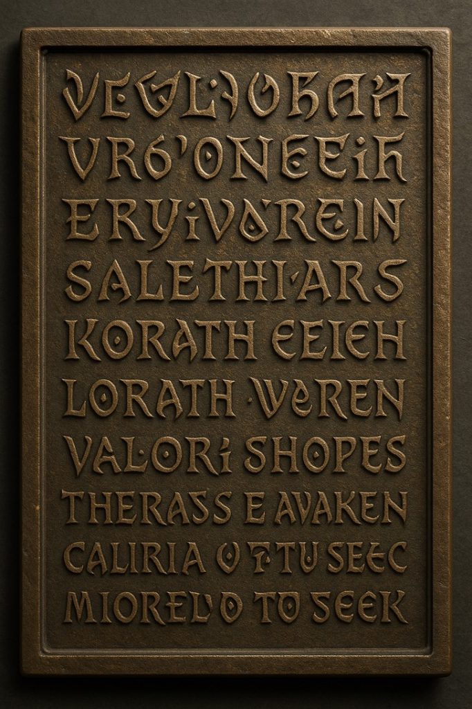 Now, the language is heard only in faint echoes—in the cries of sailors as they raise their sails, in the songs of nomads as they greet the dawn, in the laughter of children who run down roads with no thought of return. Its script, bold and sweeping, can still be seen carved into forgotten monuments: spirals like trails, stars etched as maps, lines that run onward with no end.